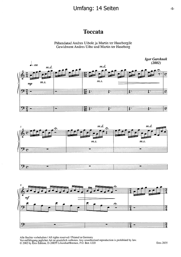 Visionen im barocken Stil für Orgel.Eres Estonia Edition