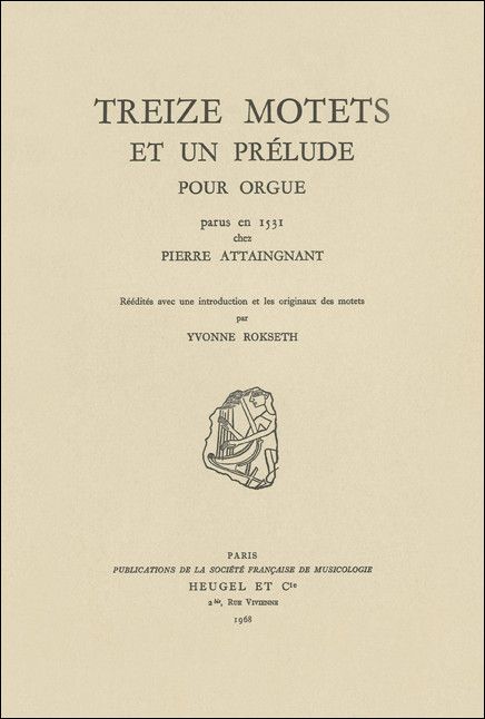 Treize Motets et un prélude pour orgue, parus en 1531 chez Pierre Attaingnant