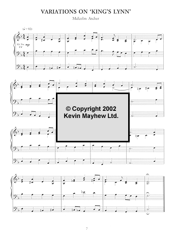 Instruments: OrganThe composer, a favourite with our organist customers, has written nine contrasting Variations on the noble tune King's Lynn. This is music for the confident player seeking to showcase the colours and balance of his or her instrument.
