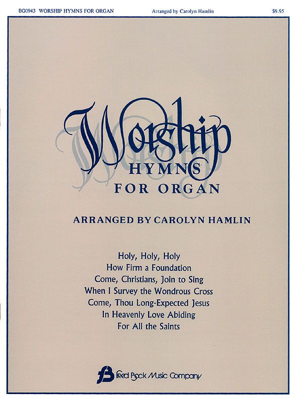 Carolyn Hamlin, an organist from Easley, South Carolina, has put together a collection of seven popular hymns, arranged for organ: perfect for preludes, postludes, offertories, and for use at weddings, funerals, etc. The hymntune is always prominent and appears often in the right hand, left hand, or pedal parts! Medium level difficulty. Titles include: Come, Christians Join to Sing * Praise the Lord, Ye Heavens Adore Him * For All the Saints * Holy, Holy, Holy * How Firm a Foundation * In Heavenly Love Abiding * When I Survey the Wondrous Cross.