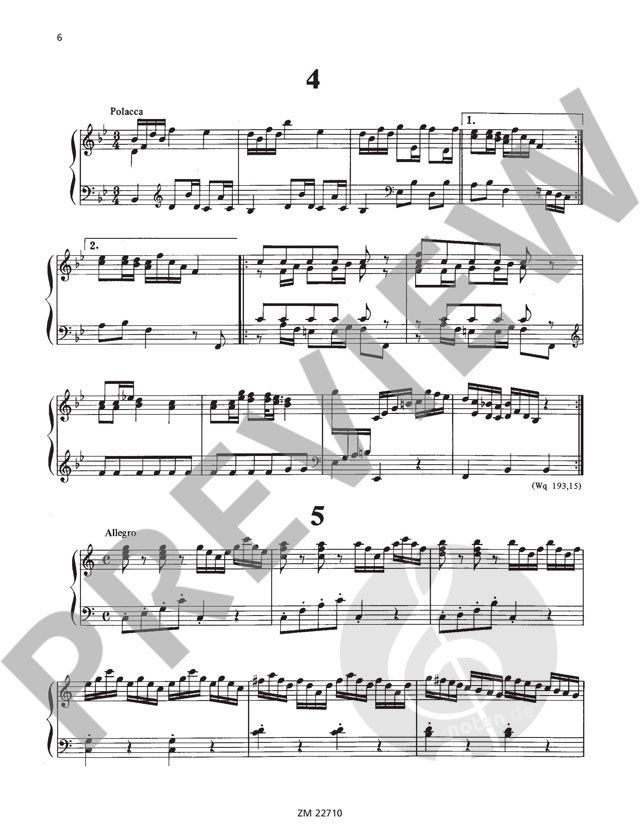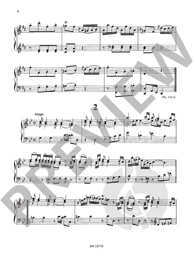 Im 18. Jahrhundert hielten mechanische Musikinstrumente wie Flöten- und Harfenuhren Einzug in wohlhabende Bürgerhäuser. In den 1770er Jahren gründete Friedrich der Große in Berlin eigens Werkstätten zur Herstellung der Uhren. Carl Philipp Emanuel Bach komponierte mindestens dreißig Musikstücke für diese Instrumente. Kurt Walther (1907-1989) war bekannt für seine ausgezeichneten Herausgaben. In dieser Edition hat er eine repräsentative Stücke-Auswahl aus Wotquenne-Verzeichnis Nr. 193 in der Fassung für Orgel (Klavier, Cembalo oder Harfe) zusammengestellt.