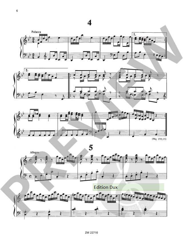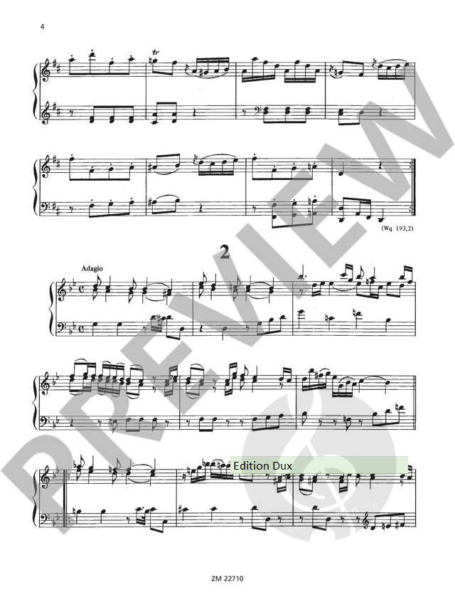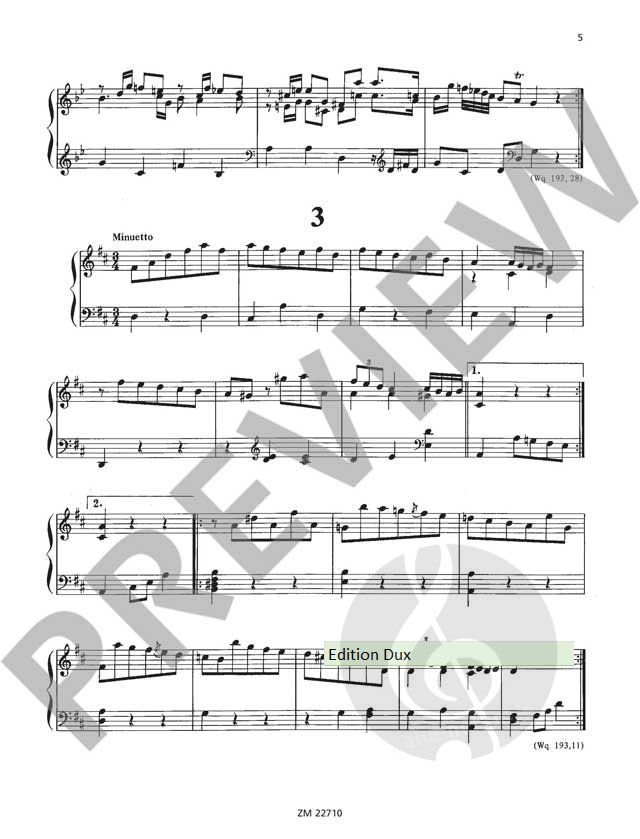 Im 18. Jahrhundert hielten mechanische Musikinstrumente wie Flöten- und Harfenuhren Einzug in wohlhabende Bürgerhäuser. In den 1770er Jahren gründete Friedrich der Große in Berlin eigens Werkstätten zur Herstellung der Uhren. Carl Philipp Emanuel Bach komponierte mindestens dreißig Musikstücke für diese Instrumente. Kurt Walther (1907-1989) war bekannt für seine ausgezeichneten Herausgaben. In dieser Edition hat er eine repräsentative Stücke-Auswahl aus Wotquenne-Verzeichnis Nr. 193 in der Fassung für Orgel (Klavier, Cembalo oder Harfe) zusammengestellt.