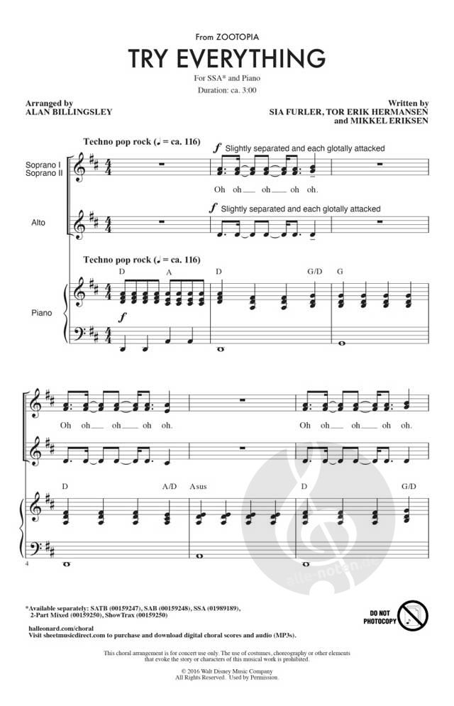 Jetzt erhältlich für SSA. Diese fröhliche Single aus dem Disney-Zeichentrickfilm Zootopia erinnert uns daran: "Don't give up! Gebt nicht auf!" Diese positive Botschaft wird Ihre Sängerinnen und Sänger...