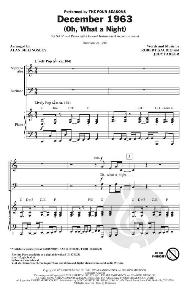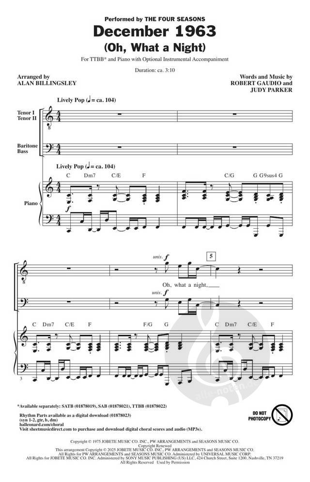 Dieses Arrangement, das ursprünglich von The Four Seasons aufgeführt wurde, ist energiegeladen und wäre eine tolle Ergänzung für jedes Konzertprogramm. Mit seiner weitgehend homophonen Textur eignet s...