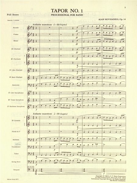 For alto saxophone, clarinet, vibraphone, tam-tam, timpani, piano and harp.