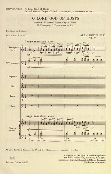 - Solo, gemischter Chor (SATB) und Orgel