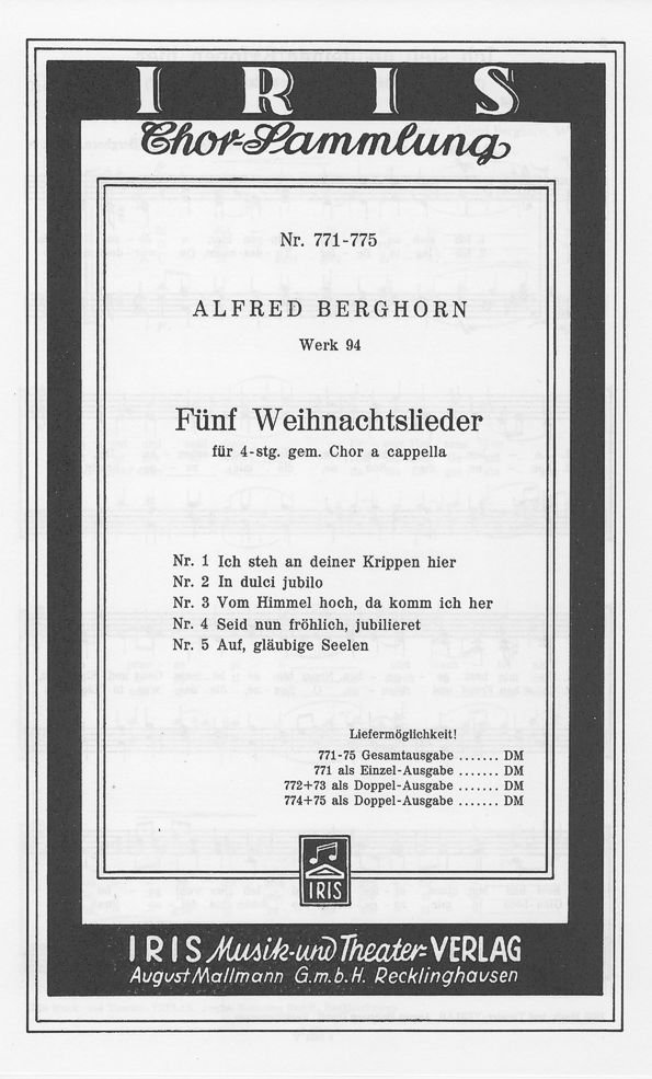 Ich steh an deiner Krippen hier- In dulci jubilo - Vom Himmel hoch, da komm ich her - Seid nun fröhlich, jubilieret - Auf, gläubige Seelen - SATB