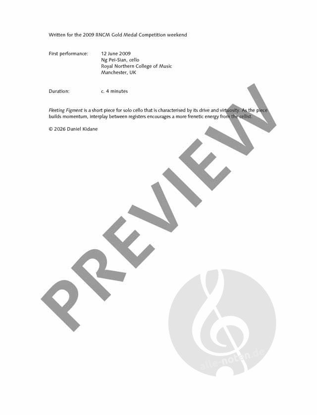 Fleeting Figment ist ein kurzes Stück für Solocello, das sich durch seinen Antrieb und seine Virtuosität auszeichnet. Während das Stück an Schwung gewinnt, fördert das Zusammenspiel zwischen den Regis...