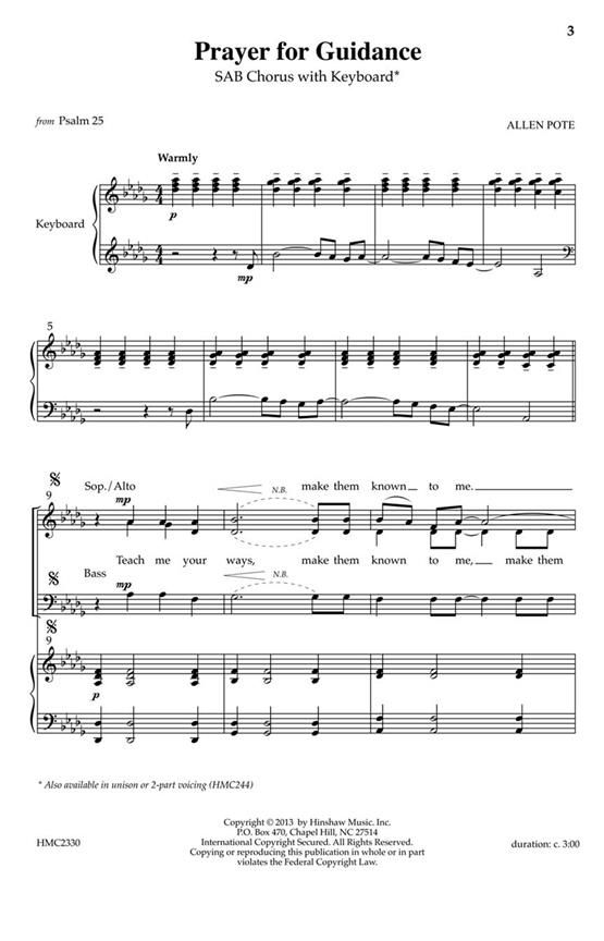 With a text from Psalm 25, this SAB work with keyboard is perfect for the small church choir. Try it for a Sunday school rally day, confirmation, or any time of commitment. This is another accessible...