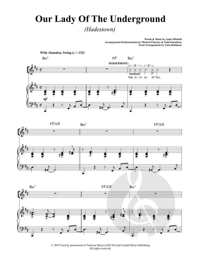 A dozen vocal selections from the 2019 Tony Award winner for Best Musical and Best Original Score by Anaïs Mitchell: All I've Ever Known - Epic III - Flowers - Hey, Little Songbird - Livin' It up...
