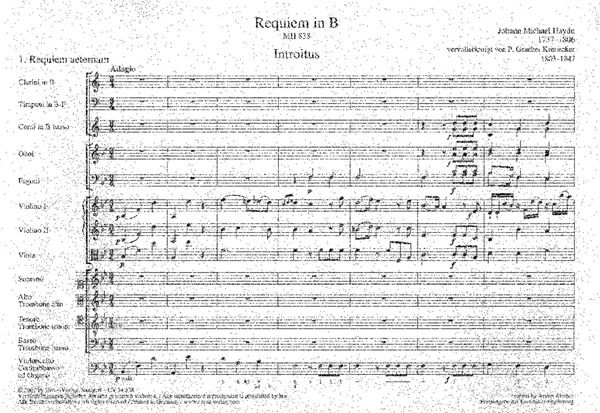 Das "Requiem in B" ist Johann Michael Haydns zweite Vertonung des liturgischen Textes der Totenmesse und zugleich sein letztes Werk, sein "Opus ultimum" (ein weiteres Requiem MH 599 stellte sich als W...