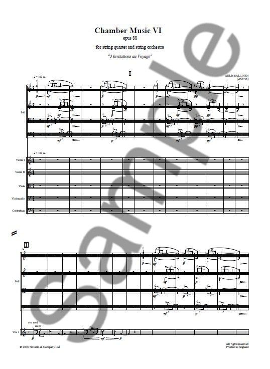 Aulis Sallinen's Chamber Music VI Op. 88 '3 Invitations au Voyage' was first performed in October 2006 by Quatuor Debussy and L'Orchestra d'Auvergne, conducted by Arie van Beek. This piece is scored f...