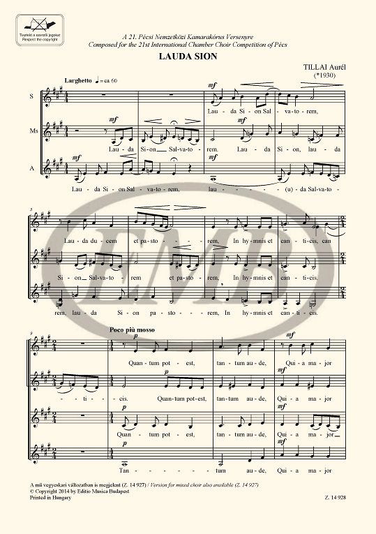 The noted Hungarian choirmaster and composer, born in 1930, set four verses of the Lord's Day sequence of St Thomas Aquinas in this short devout work, which draws on the melody of the original Gregori...