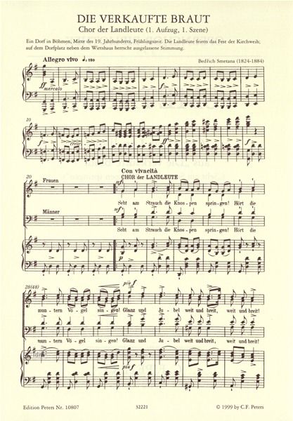 Auch können Sie gezielt in unserem Suchfeld nach Noten von Bedřich Smetana suchen; so erhalten Sie z.B. mit der Schreibweise verkaufte Braut alle Noten zu Bedřich Smetanas rasanter Oper von 1866 Die verkaufte Braut oder »Prodaná nevěsta«.