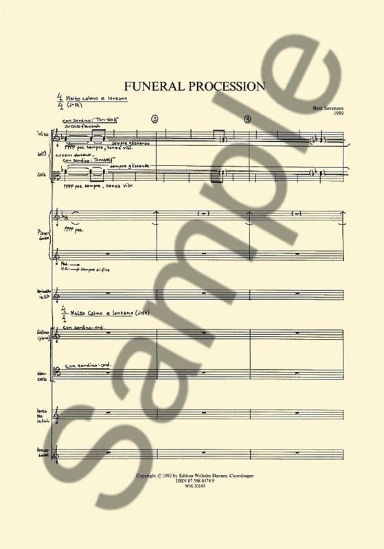 Funeral Procession for Violin, Viola and Chamber Ensemble was composed in 1989 as a commission from the Sonanza Ensemble. The music is, apart from a few swarming bursts, slow and silent. Dynamic is al...