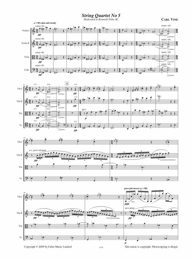 Described by its composer as 'a fantasia', Carl Vine's dramatic String Quartet No.5 (2007) contains six clear sections but like much of his music is cast in one continuous movement. There is some repe...