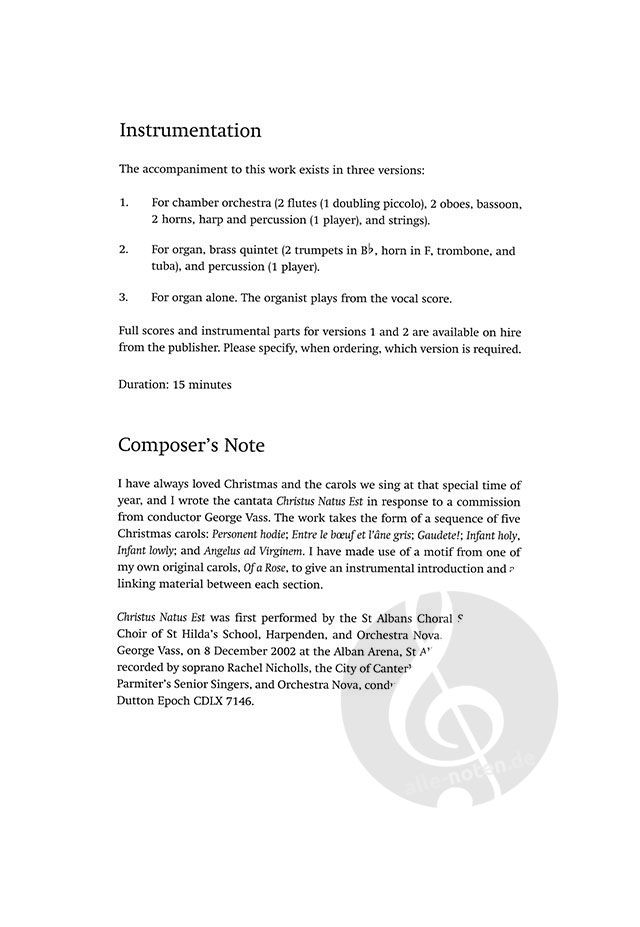 This carol (in E major) is also available in Carols for Choirs 2, and 12 Christmas Carols Set 1. The orchestral and brass accompaniments are available on hire. A different arrangement (in E flat major...
