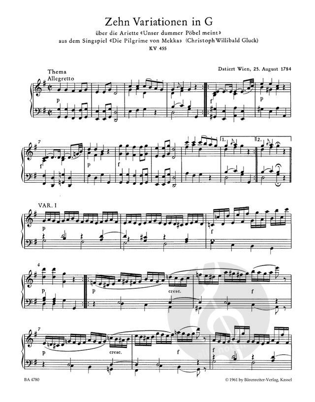Variationen für Klavier hat Mozart von frühester Jugend an geschrieben. Die ersten Zeugnisse reichen bis ins Jahr 1766 zurück, das letzte Werk entstand im Todesjahr 1791. Mozart hat auf seinen Konzert...