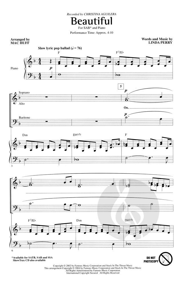 This moving anthem of self-respect hit the charts in a powerful performance by Christina Aguilera. Ideal for pop or spring concerts in both mixed and SSA voicings. Available for SATB, SAB and SSA. Sho...