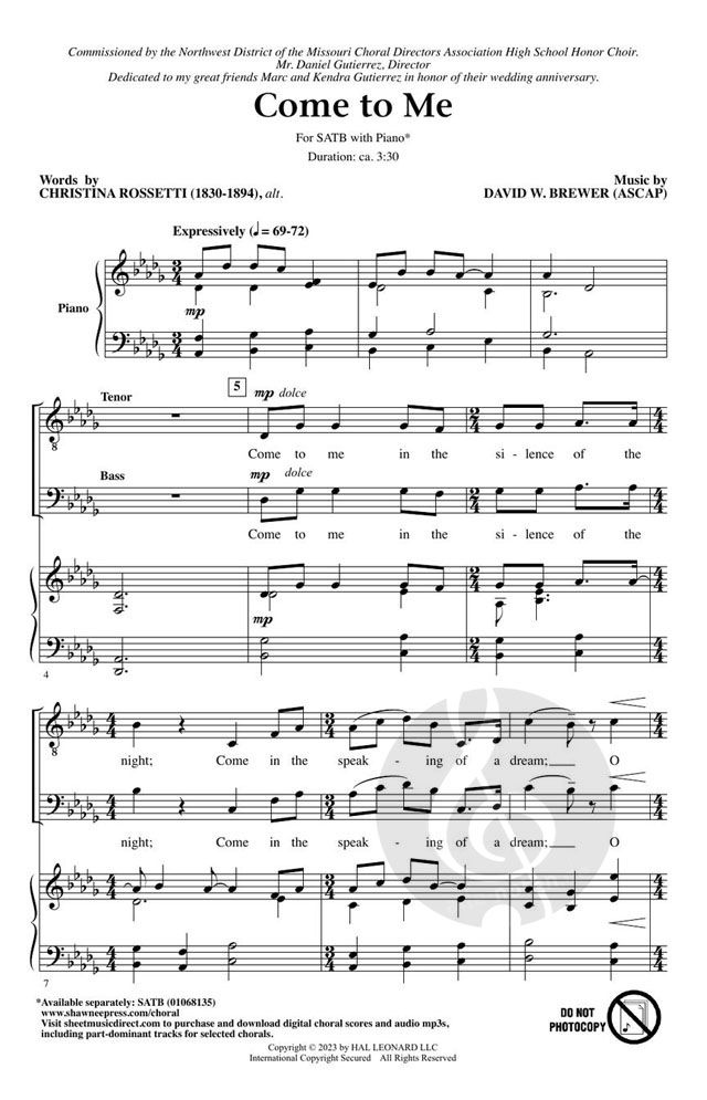 Expressive with rich harmonic structure supporting a soaring melody, this setting of Rossetti's romantic poem is an exquisite SATB work. Harmonic dissonance weaves through the piece, creating tension...