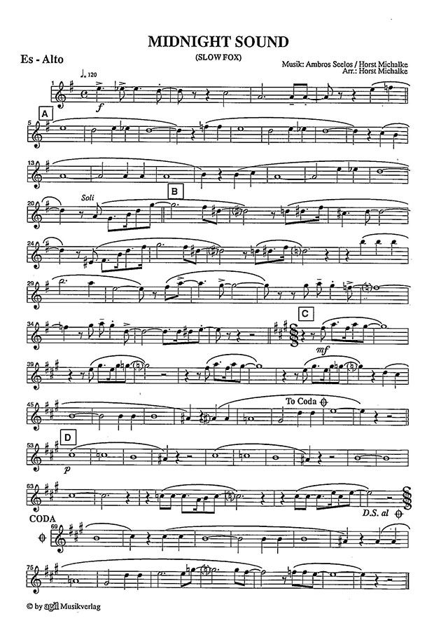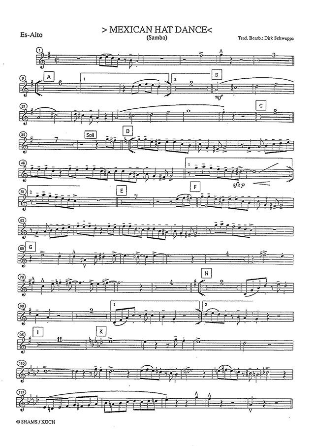 Besetzung: Solo-Klarinette / Alto / 2 Tenor / Bariton 3 Trompeten (4. u. 5. ad lib.) / 3 Posaunen / Rhythmus
