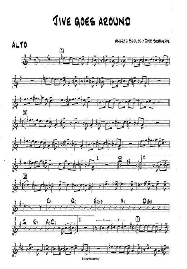 Besetzung: 3 Trompeten-Solo Alto / 2 Tenorsax / Bariton / ac lib.: Klarinette 3 Posaunen / Rhythmus