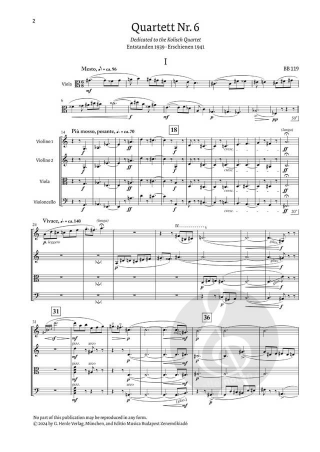 Bartók begann sein 6. Streichquartett im Sommer 1939 als Gast von Paul Sacher im idyllischen Schweizer Bergdorf Saanen, bevor der drohende Kriegsausbruch ihn zunächst nach Budapest und dann in die Emi...