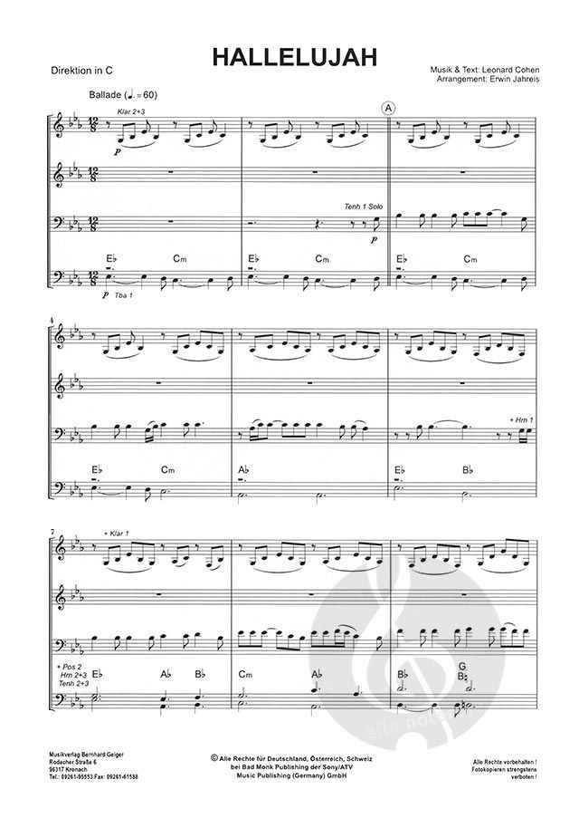 Der Klassiker für Hochzeiten und alle Verliebten: Hallelujah (Musik: Leonard Cohen) Bekannt aus dem Film 'Shrek' und einfühlsam interpretiert von Alexandra Burke. Arrangement für Blasmusik (Gesang opt...