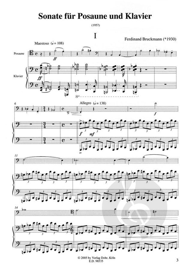 Posaune, Klavier; Partitur, Solostimme. Format: 22 S. Part. + 6 S. Stimme - 29,7 x 21 cm.