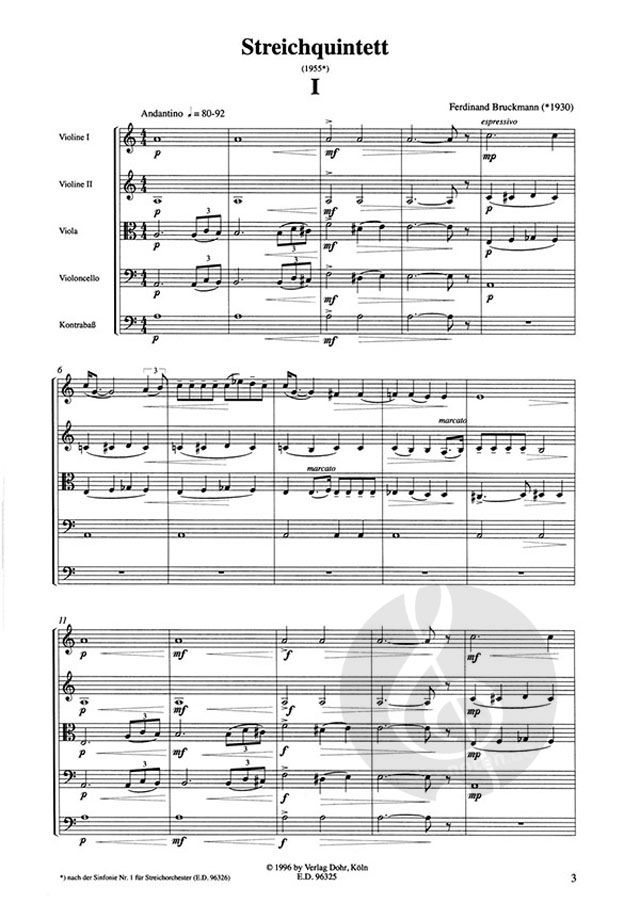 Violine (2), Viola, Cello, Kontrabass; Partitur, Stimme(n). Format: 25 Part. + 35 S. Stimmen - 29,7 x 21 cm.
