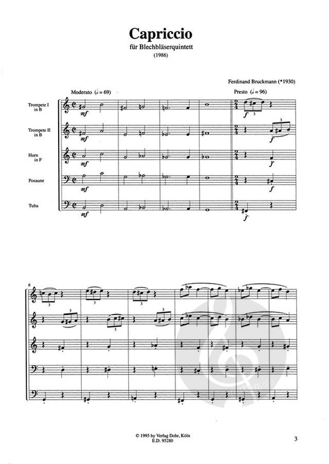 Trompete (2), Horn, Posaune, Tuba; Partitur, Stimme(n). Format: 6 S. Part. + 5 x 1 S. Stimmen - 29,7 x 21 cm.