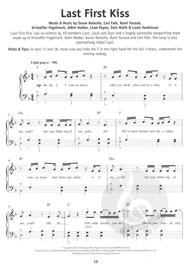 Fifteen popular chart hits arranged for 5-finger Piano.