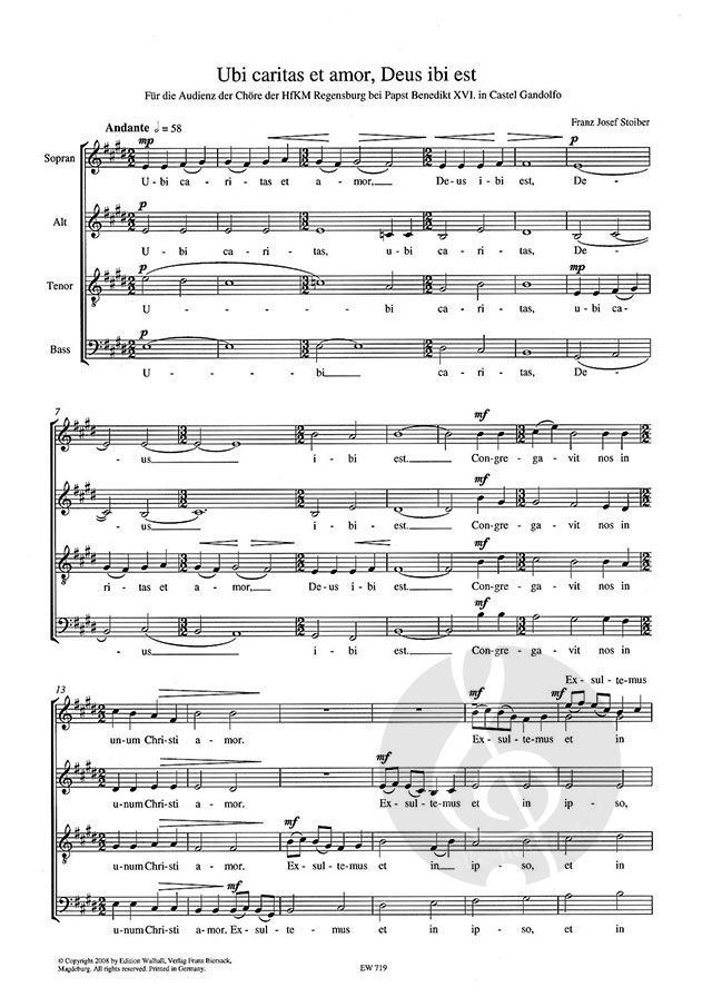 Neben 'Jubilate Deo' und 'Da pacem, Domine' enthält der Band auch das Papst Benedikt XVI. gewidmete 'Ubi caritas et amor', das 2007 in Castel Gandolfo mit großem Erfolg uraufgeführt wurde. Sacri Conce...