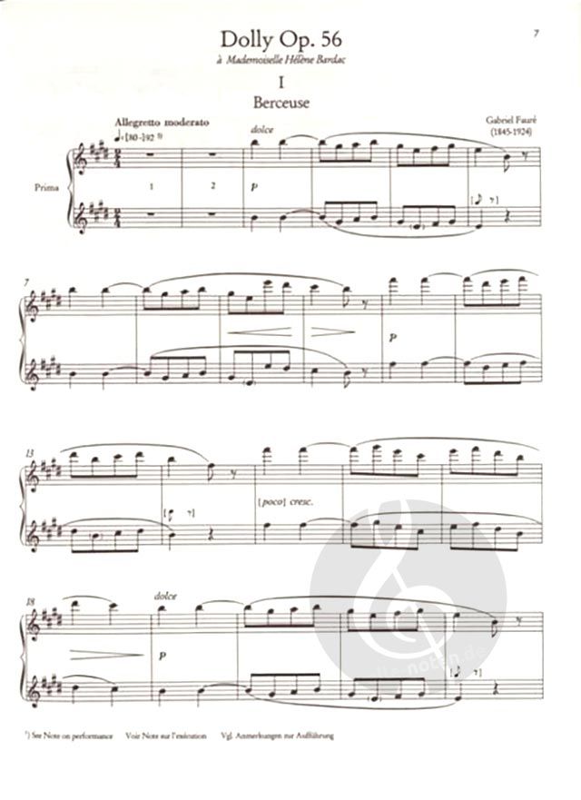 The Dolly suite, a collection of six piano duets (for one piano, four hands), shows Fauré's wittier side while portraying the many scenes and moods of childhood. This suite got its name from its dedic...