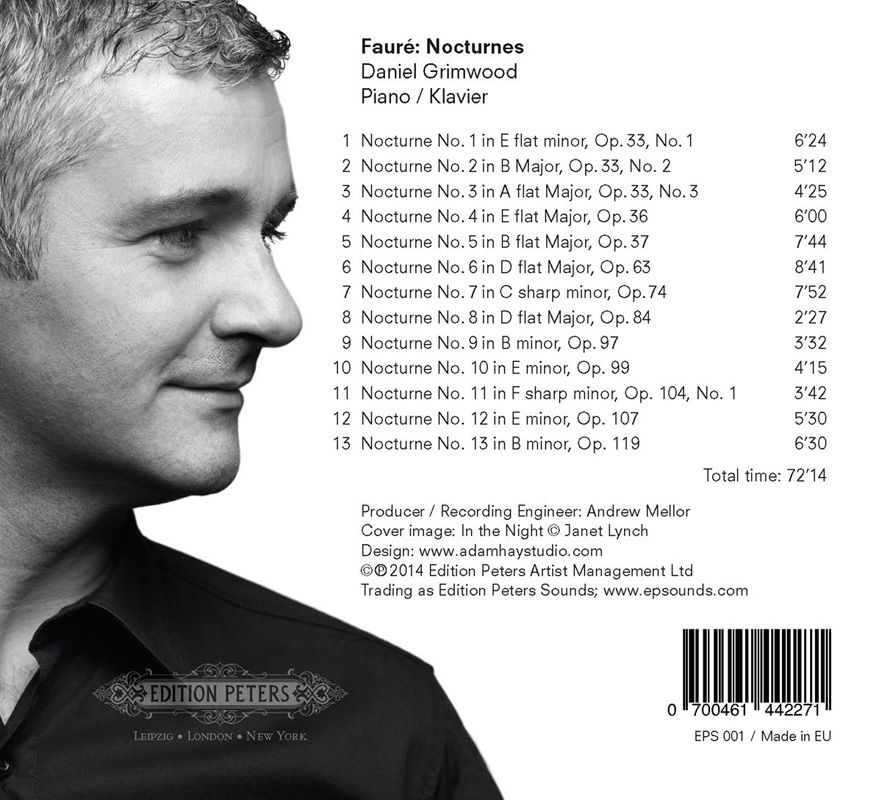 Das neue CD-Label 'Edition Peters Sounds' startet mit der ersten CD, der Aufnahme der Nocturnes von Gabriel Fauré. Einfühlsam interpretiert Daniel Grimwood diese perlenden Nachtgedanken des Franzosen....