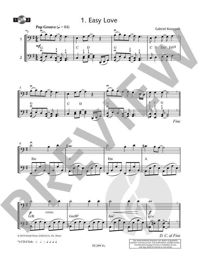 Die 45 netten Duette sind ein leichter Einstieg in das Etüdenspiel für kleine und große Cellisten. Wenn die Tonleiter swingt, Dreiklänge nach Countrymusik klingen und rpeggien zur Begleitung einer Pop...