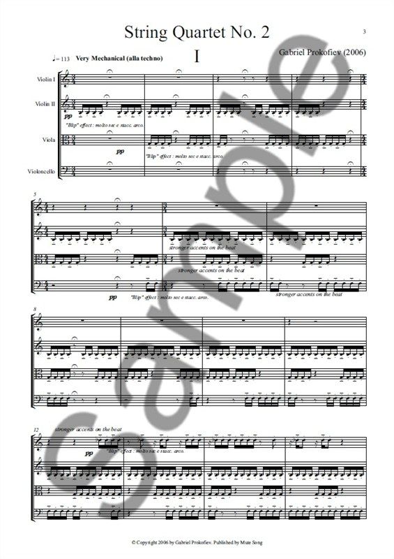 Gabriel Prokofiev's String Quartet No. 1. Commissioned and premiered by the Elysian Quartet in London, 2003. Score and parts.