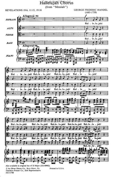 A sacred oratorio, written in 1738 arranged for SSATBB, edited, and the piano accompaniment arranged by, Mendelssohn.