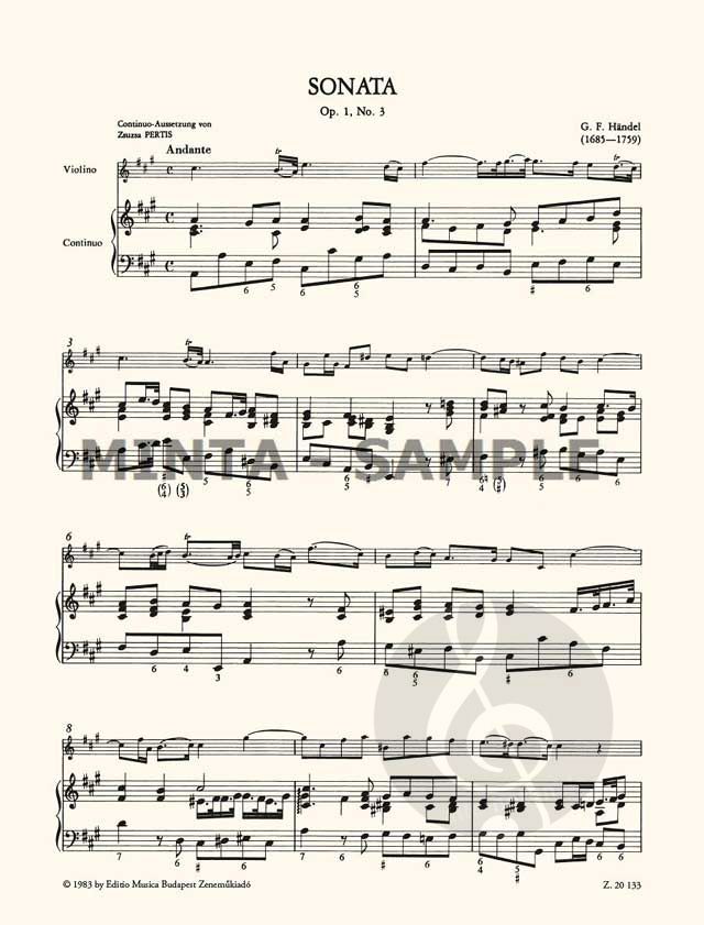 Die vorliegende Publikation enthält eines der sechs Werke der fünfzehn Solosonaten mit Generalbassbegleitung op. 1 von Händel, die heute als Violinsonaten bekannt sind. Die vorliegende Ausgabe basiert...