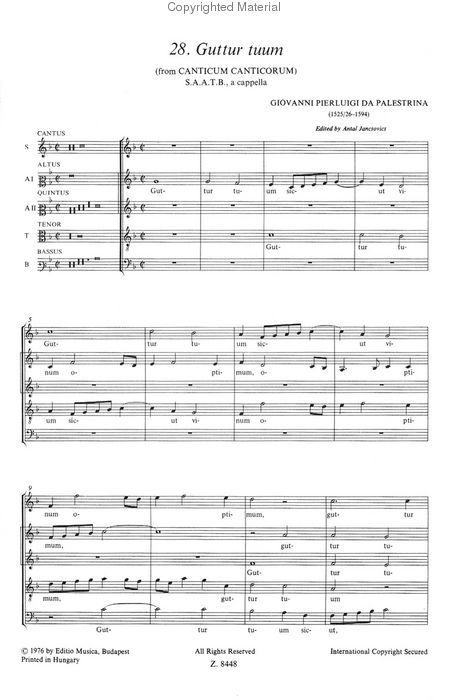 Beautiful two movement set drawn from a mass and motet of Palestrina. More advanced players will be challenged by the contrapuntal writing and varied textures of this setting.