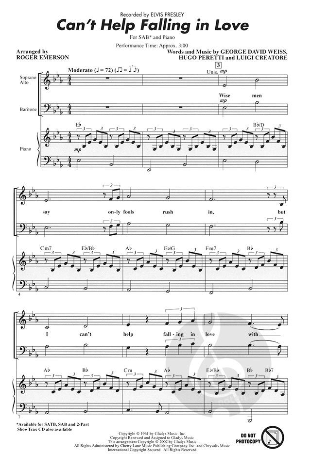 Can't Help Falling In Love by Elvis Presley for Piano, Voice and Guitar.
