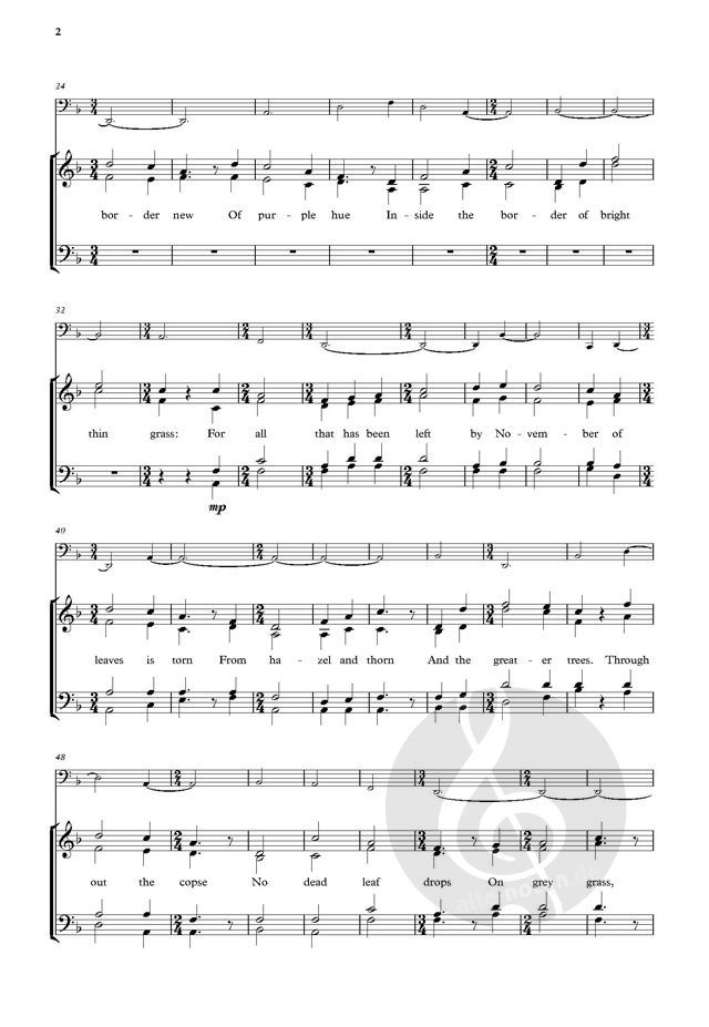 Skempton's After Rain sets an evocative text by Edward Thomas with a contemplative choral part over a rich and slow-moving cello line. Skempton alternates between contrasting upper-voice duets and ful...