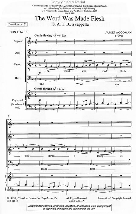 Woodman sets the traditional text of We Three Kings to an original score, somewhat reminiscent of a faraway time and place. For advanced choirs.