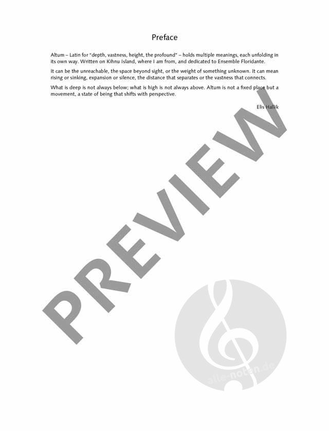 Ich habe das Stück auf meiner Heimatinsel Kihnu komponitert und dem Ensemble Floridante gewidmet. Altum – lateinisch für "Tiefe, Unermesslichkeit, Höhe, das Tiefgründige" – hat mehrere Bedeutungen, di...