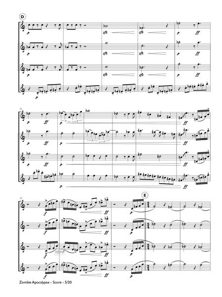 A programmatic work with a slight twist on the standard saxophone quartet configuration. Originally composed for the Mazama Saxophone Quartet (Medford, OR). Instrumentation: Soprano Saxophone, 2 Tenor...