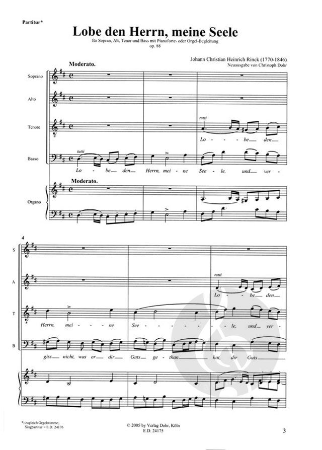 - Soli, gemischter Chor (SATB) und Orgel