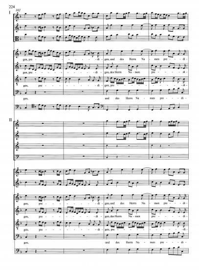 - Gesang (tief), 2 gemischte Chöre (SATB) und Basso Continuo