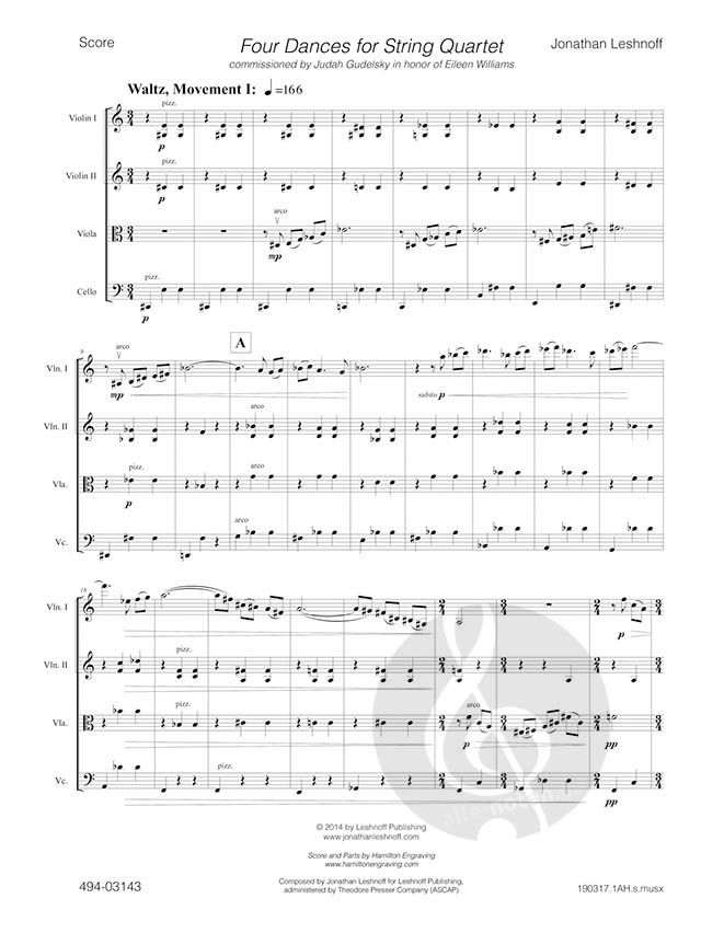 A commission by Harris Miller and Deborah Kahn, both active figures in the politics and arts of Northern Virginia and Washington, D. C. , led to Leshnoff's 3rd String Quartet. The 20 minute work build...