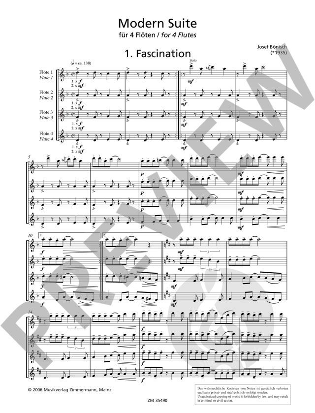 1. Flöte in C 2. Flöte in C 3. Flöte in C 4. Flöte in C 4. Stimme in Bb (Klarinette) ossia 4. Flöte