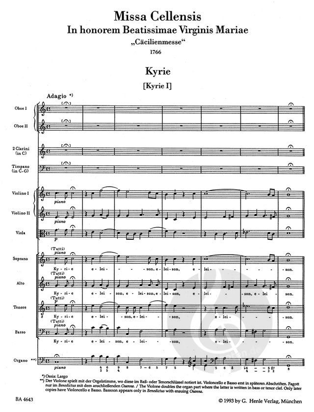 Die 1782 komponierte "Missa Cellensis" ist besser bekannt als "Mariazellermesse", mit Bezug zum Wallfahrtsort Mariazell in der Steiermark, wo sie aufgeführt wurde. Durch die Revision des im G. Henle V...